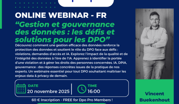 29/09/2025 @ 16:00 – 17:30 – dpo pro nodigt u uit voor zijn volgende Engelstalig webinar op 29 September @ 16:00. “Versterk je communicatievaardigheden als DPO” Wij nodigen u uit om deel te nemen aan een exclusief webinar gepresenteerd door Nico De Bock. Als DPO is je kennis van de GDPR onmisbaar — maar je impact hangt af van hoe doeltreffend […]