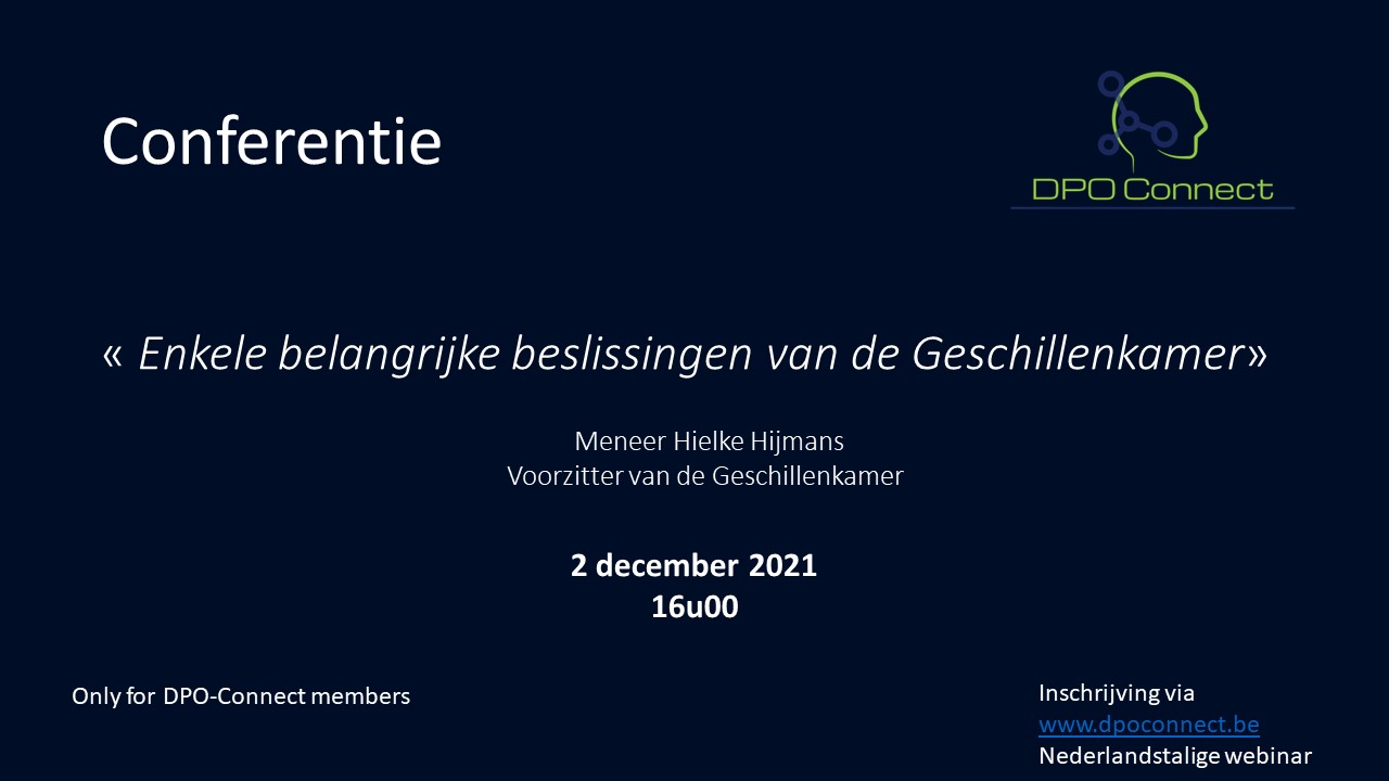 SAVE THE DATE – dpo connect conferentie: “Enkele belangrijke beslissingen van de Geschillenkamer” op 2 december 2021 (NL)